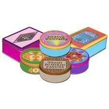 Store your favorite treats from every wizard's favorite magical candy shop, Honeydukes, in this Harry Potter tin assortment. The six tins include lids labeled for Fizzing Whizzbees, Pumpkin Juice, Fresh Pumpkin Tasties, Acid Pops, and Cauldron Cakes. Each of the 4 round tins measures 5.25 inches in diameter and 2.5 inches tall, and each of the 2 hinged rectangle tins is 7.5 x 5 x 2.75 inches.